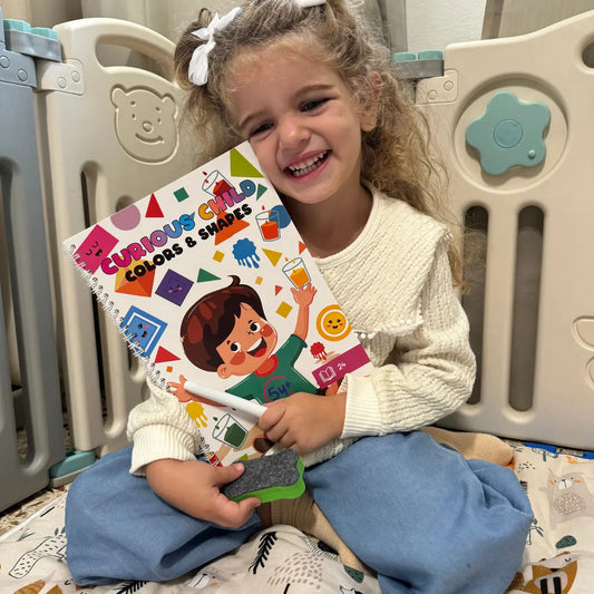 Curious Child Colours – Sešit Piš a smaž pro výuku psaní, opakovaně použitelný (64 stran, 2–5 let)