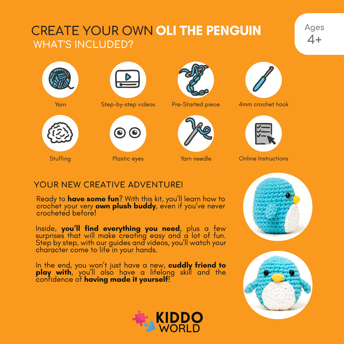 Čarovná sada na háčkování pro začátečníky | Tučňák Oli pro malé i velké tvůrce, pro děti 8+