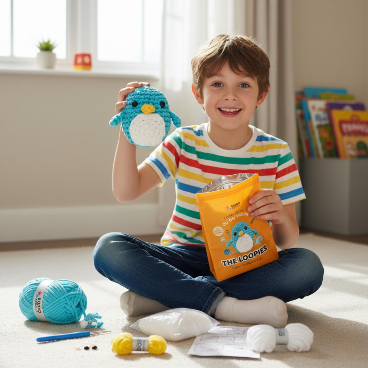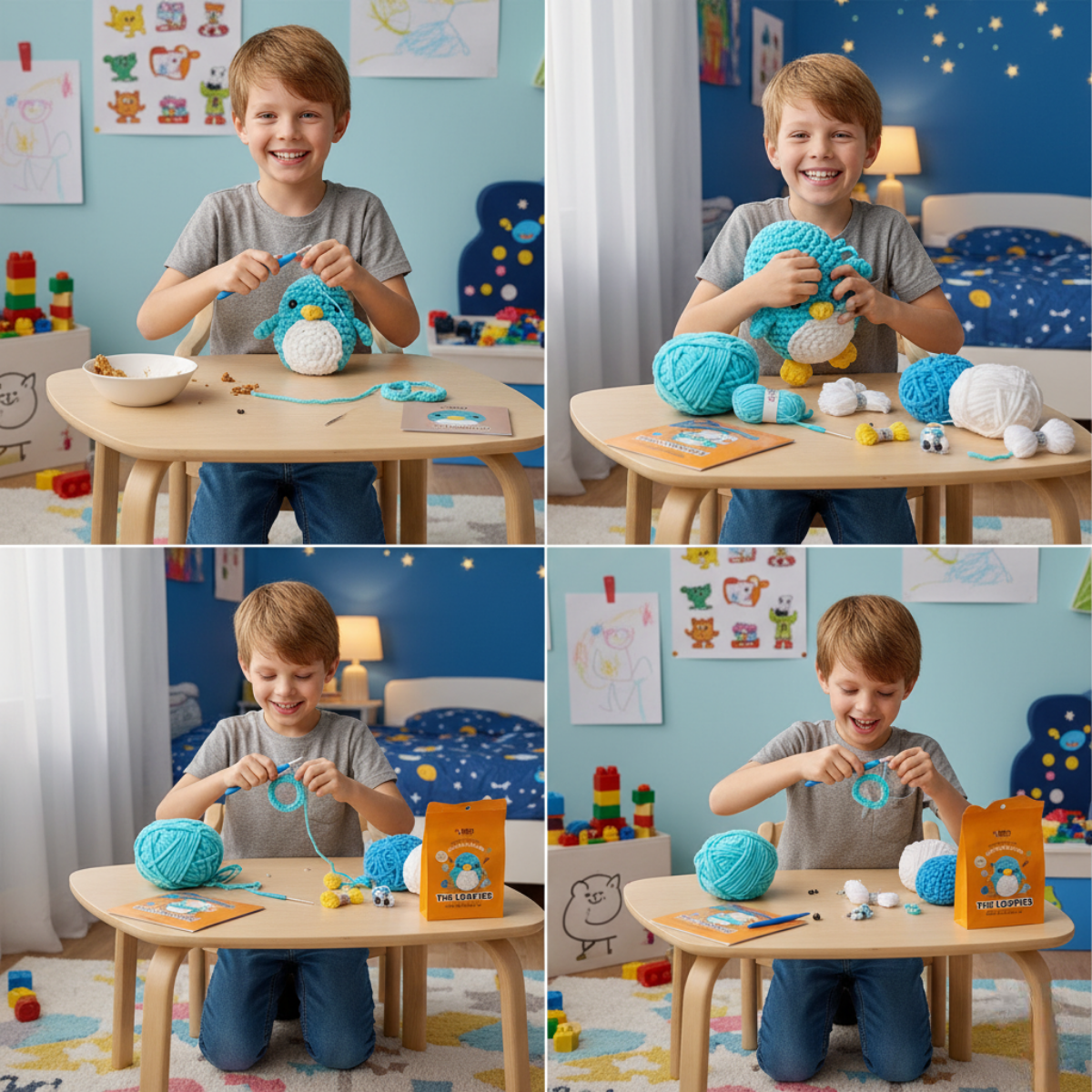 Nauč se háčkovat se sadou The Loopies a vytvoř si svého roztomilého tučňáka! 🧶🐧 S měkkou přízí, která se netrhá, jasnými video návody a všemi potřebnými materiály si krok za krokem vyrobíš svého prvního tučňáka – dokonalý úvod do světa háčkování, bez frustrací a plný tvořivé radosti. ✨