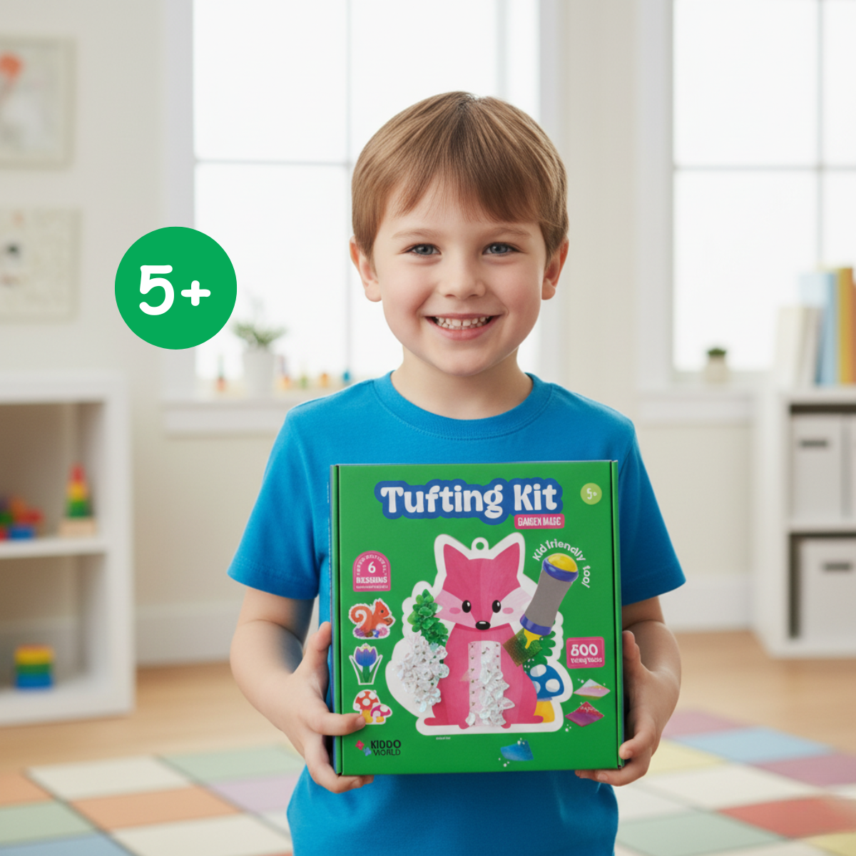 Miluji Tufting Kit! Sada je velmi zábavná, nástroj skvěle padne do malých rukou, návody jsou jasné a jednoduché. Děti si užily tvoření barevných obrázků bez nepořádku – dokonalá kombinace smyslové hry a učení!